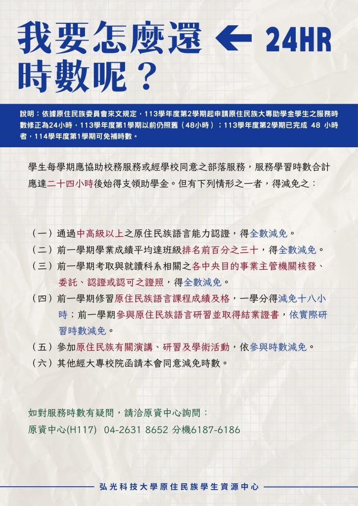 ★注意事項:需要還助學金時數的同學,需至原資中心領取「服務學習時數表」。